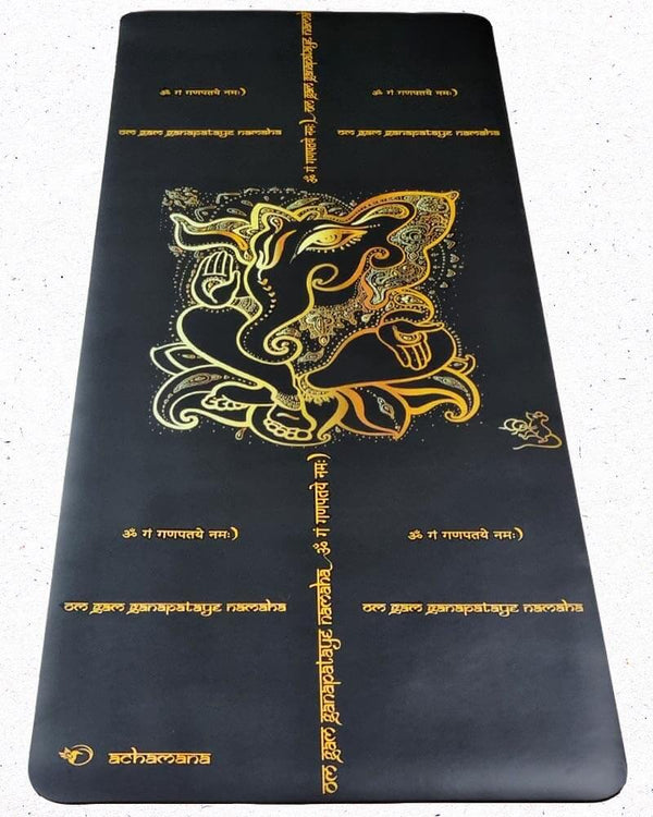 Sa base en gomme de caoutchouc naturel et durable offre une stabilité et un amorti remarquable. Il ne corne pas dans les coins et reste plat quand on le déroule ! Pratiquez votre yoga sur un tapis confortable, sécure et inspirant, dans la puissance énergétique du mantra dédié à la protection de Ganesh " Om Gam Ganapataye Namaha"