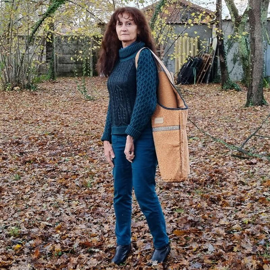 This natural cork yoga bag can hold a mat, clothes, bricks and small accessories for yoga, Pilates or fitness. It is suitable for anyone who favors the refinement of natural materials and vegan ethics.