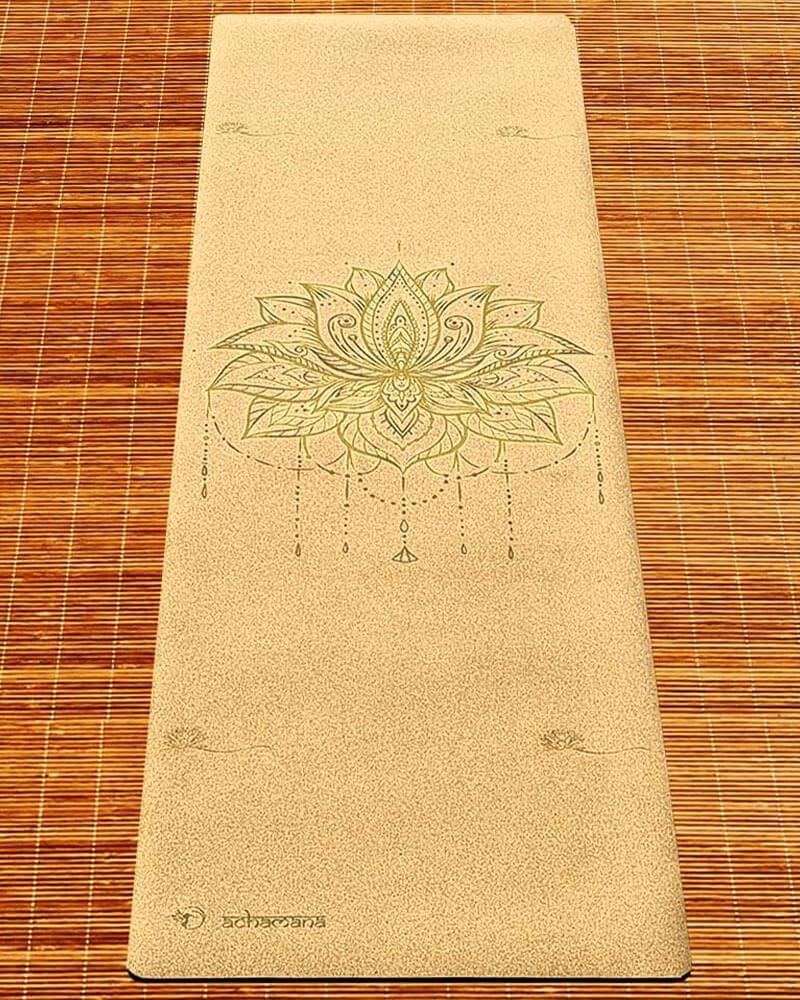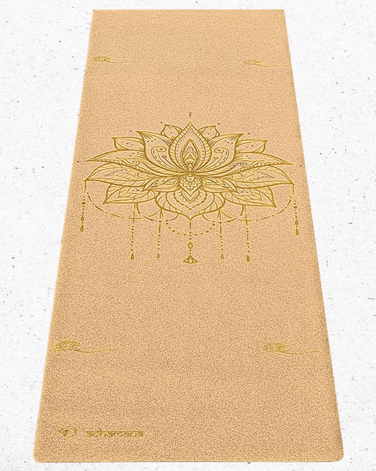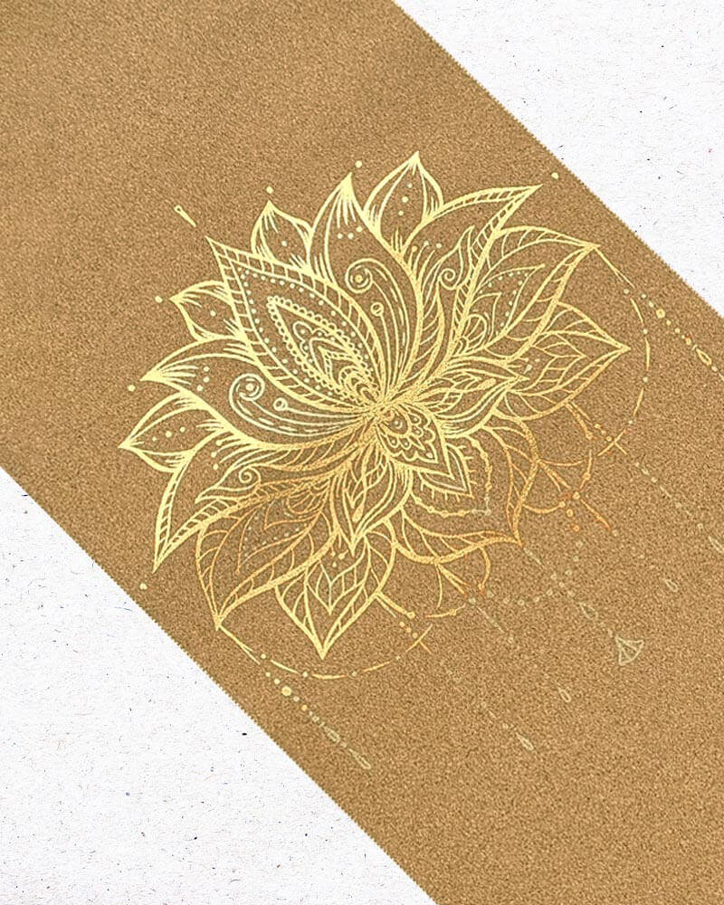 Tapis de yoga de voyage liège et caoutchouc naturel Fleur de lotus Or