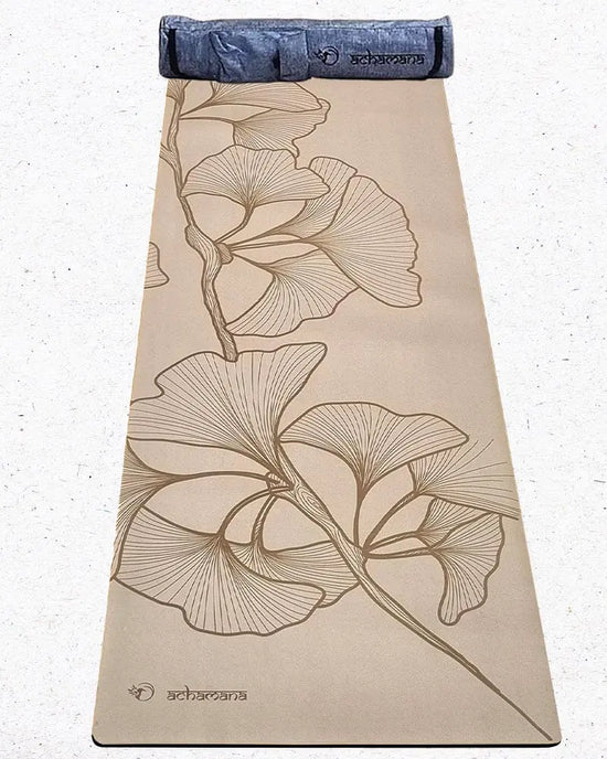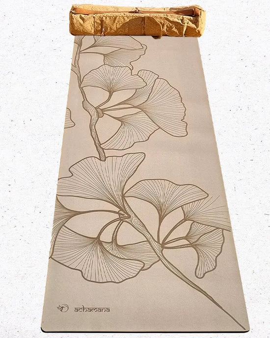 Tapis de yoga antidérapant caoutchouc PU - Elévation beige - Vignette | Achamana