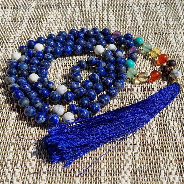 Collier mala Lapis lazuli 7 chakras - Perles AA 8mm