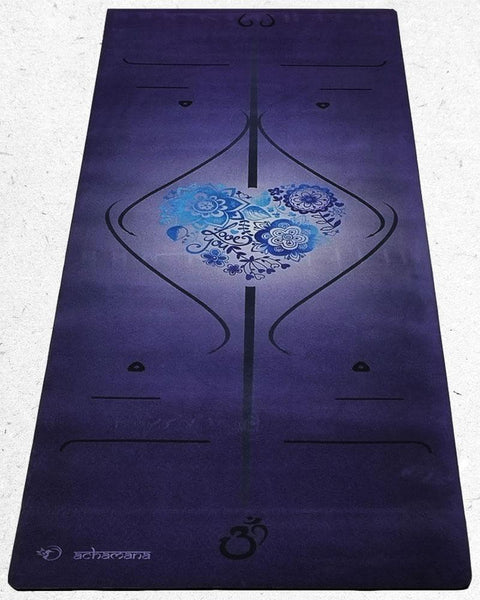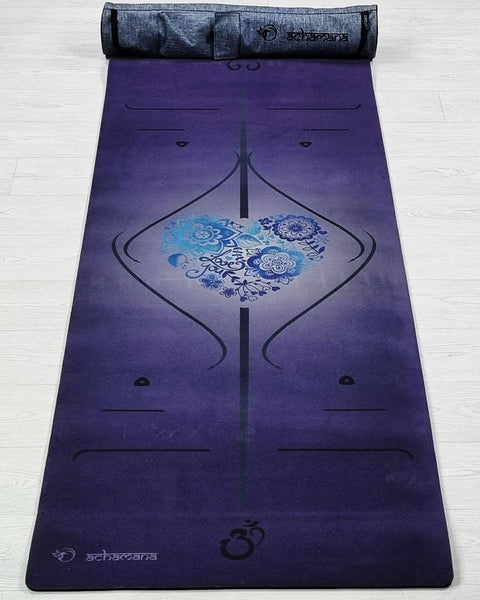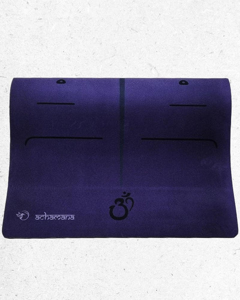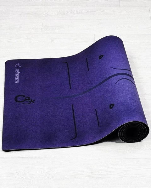 Caoutchouc naturel, TPE et microfibre suède, trois matières éco-responsables pour un tapis de yoga antidérapant et durable, grand format et léger. Fabrication hi-tech tri-pli thermocollés. Lignes de positionnements pour une pratique précise en solo.