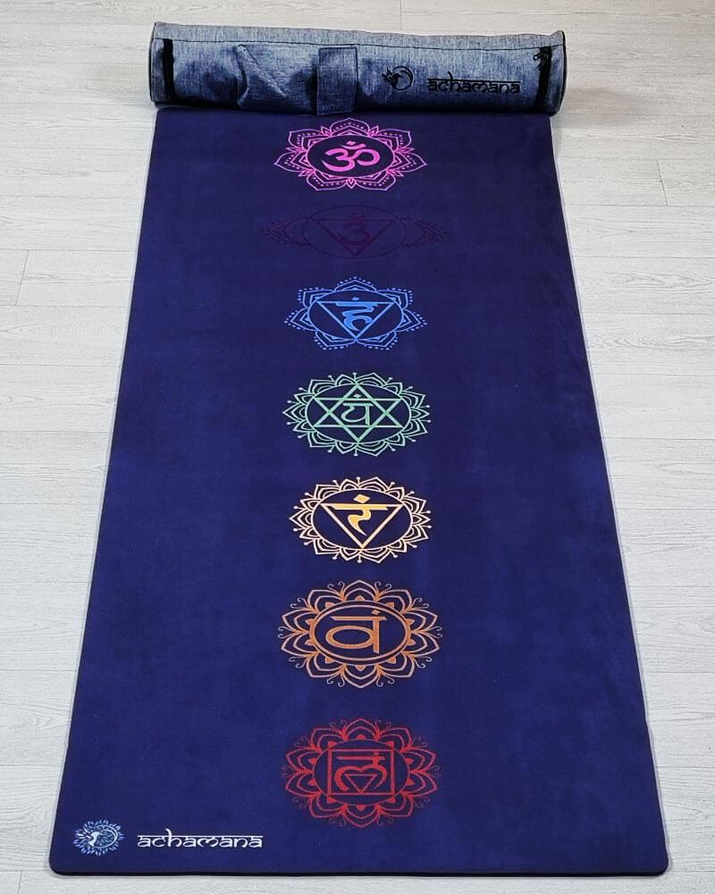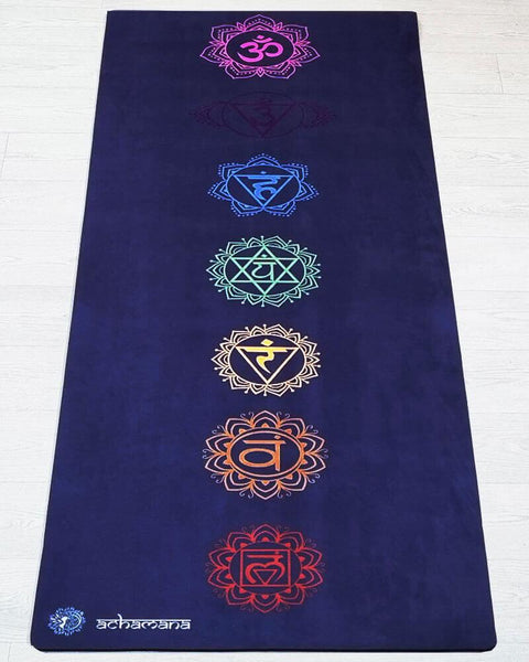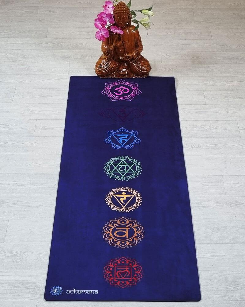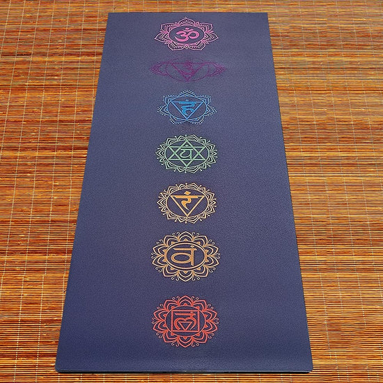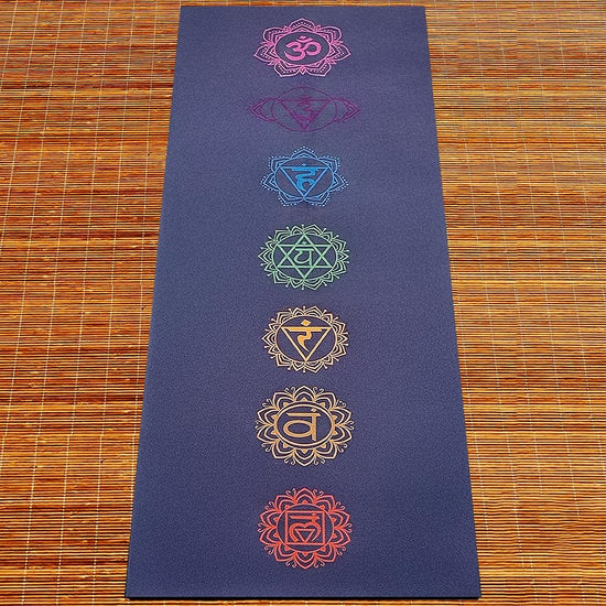 Un tapis de yoga antidérapant et durable inspirant. Les 7 chakras font partie du système de chakras le plus connu, composé de sept centres d'énergie, en perpétuel mouvement, situés le long de la colonne vertébrale et se terminant dans le cerveau, de la région du périnée au sommet de la tête.
