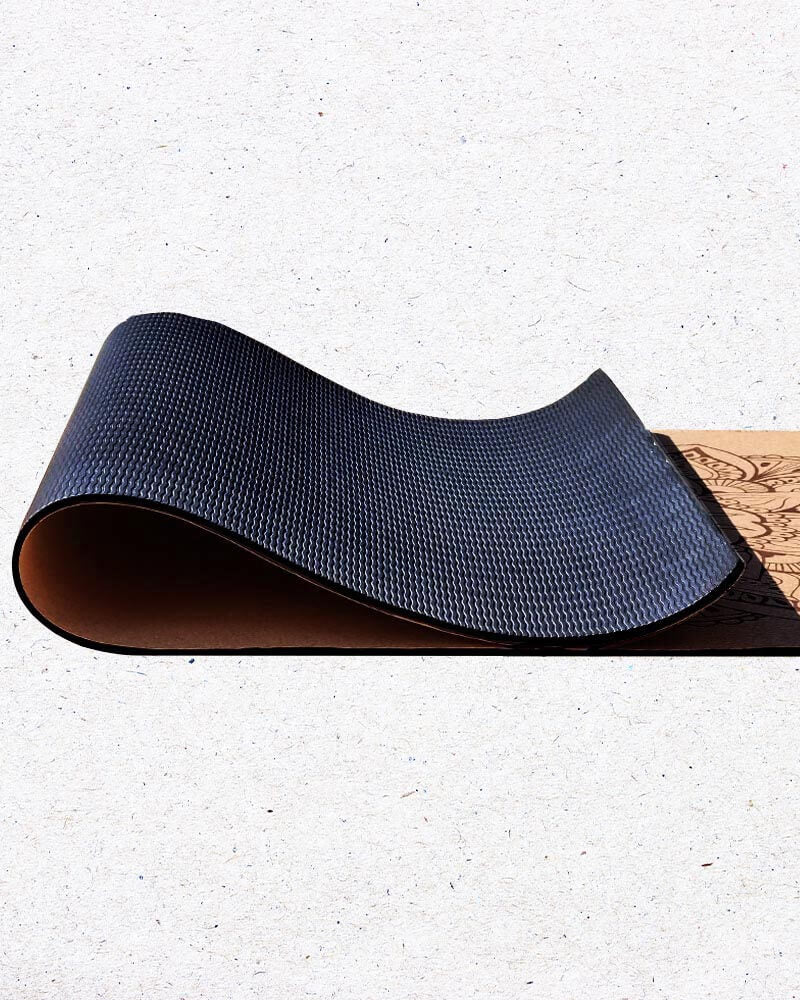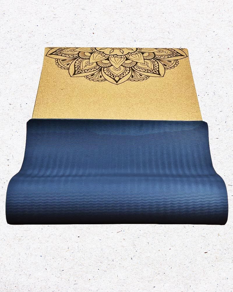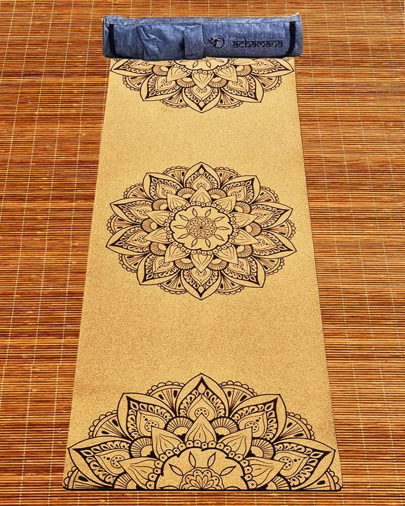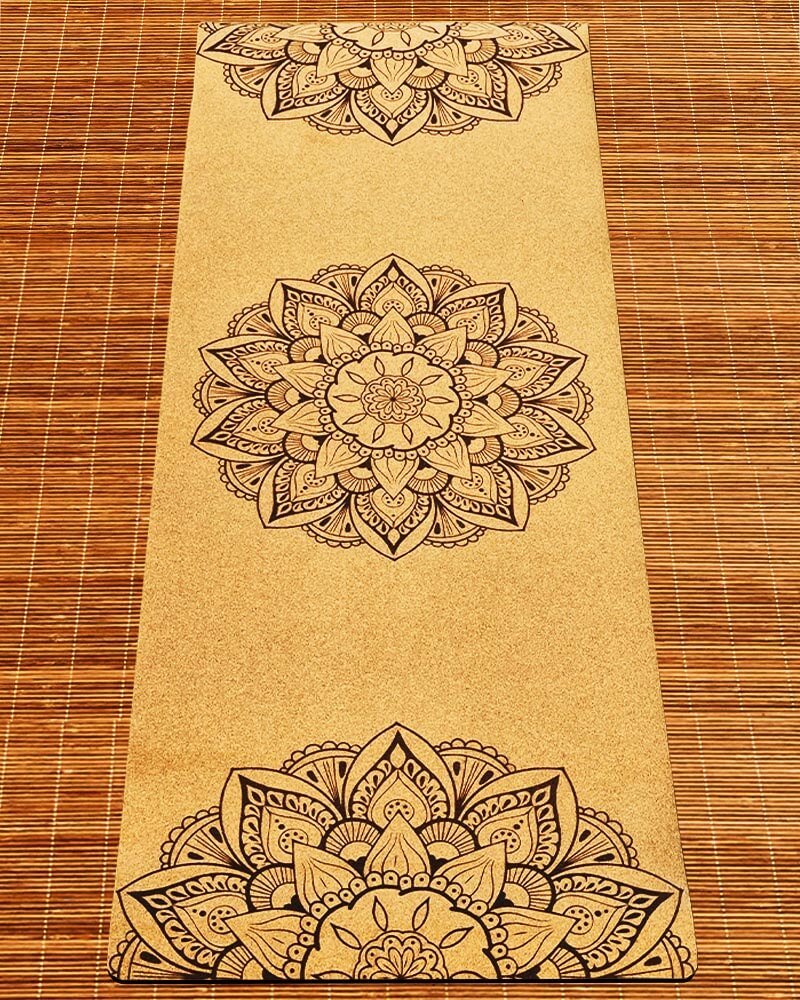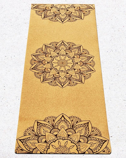 Tapis yoga débutant en liège 3 plis 6 mm 3 mandalas