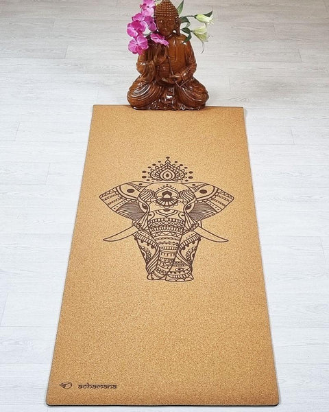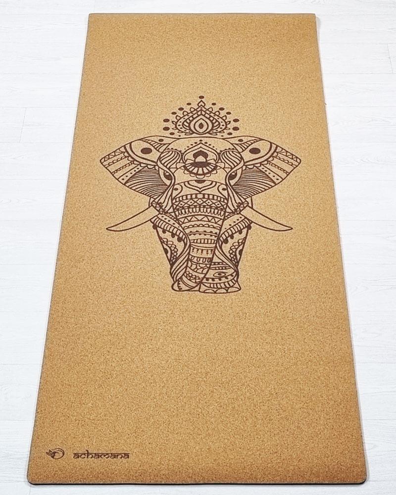 Tapis de yoga en liège XL motif éléphant