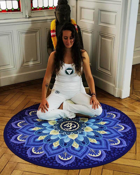 C'est un tapis de yoga écologique en caoutchouc naturel respectueux de l'environnement, sa forme ronde inhabituelle énergisée par le mandala renforce la connexion à Soi.