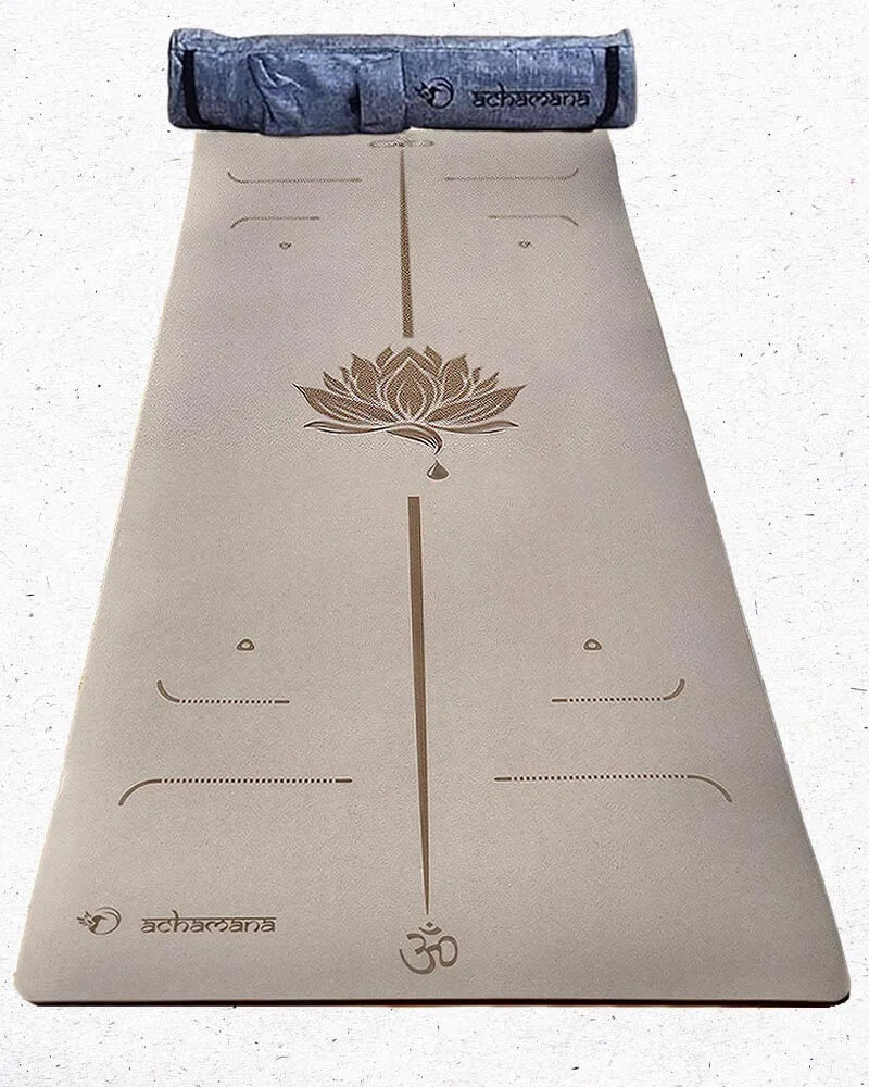 - Marqueurs de position : ligne centrale, point central Lotus et marqueurs d’alignement pour une posture parfaite.