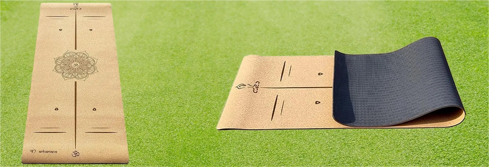 Tapis yoga épais 6 mm surface liège  pour yoga et Pilates - Tapis yoga mandala lignes de position | Achamana